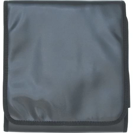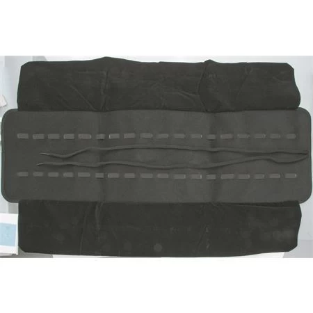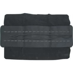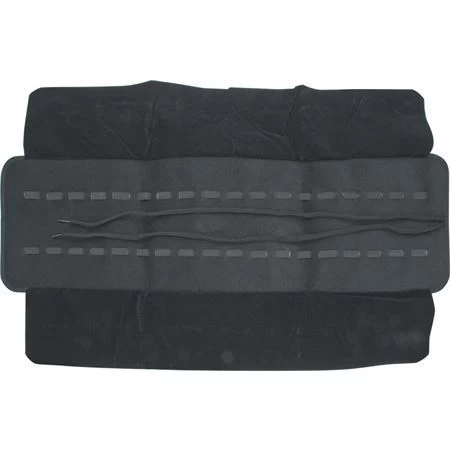 Model – AC91. Knife Roll 36. Measures approximately 8.25 inch x 9 inch closed and 26 inch wide open. Holds approximately 36 knives. Black imitation leather construction with cloth lining. Tie closure.