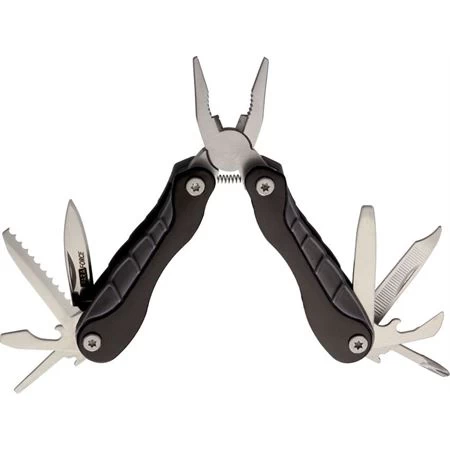 Model – AS800C. ParaForce Multi-Tool. 3 inch closed. 4.25 inch overall. Black aluminum handles. Tools include: Needlenose pliers l Pliers l Scissors l Small blade l Bottle opener l Phillips screwdriver l Serrated blade l Can opener l Nail cleaner l File l Small screwdriver l Large screwdriver l Flat head screwdriver. Clam packed.