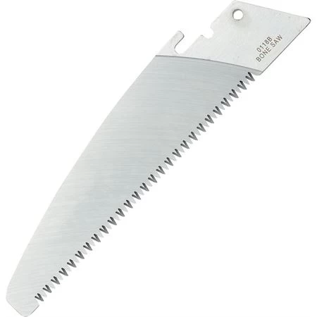 Model – BR0118B. Replacement Blades Tactical. Serrated SK5 carbon steel blade. Bone saw. For use with Speed Load Folding Saw (item BR0118). Hang packaged.