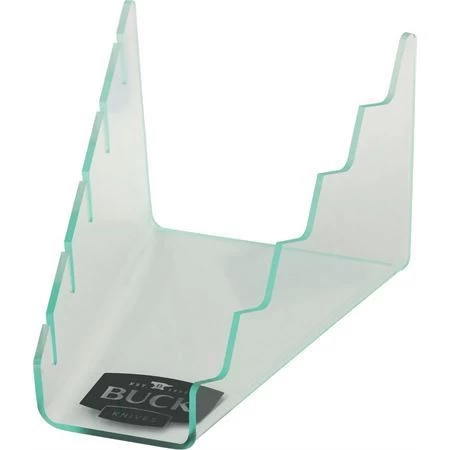 - Clear acrylic construction with black Buck logo