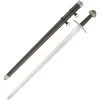 Model – CN211434. Knights Templar Sword. 33 inch overall. 22 inch mirror finish unsharpened stainless blade. Gold finish pewter handle and guard. Black wood scabbard. Boxed.