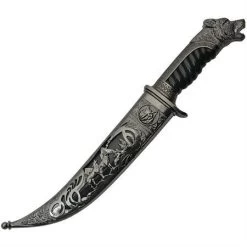 Model/Part Number – CN926978. China Made Waterfall Katana. 38″ (96.52cm) overall. 28″ (71.12cm) blue TiNi coated carbon steel blade. Blue cord wrapped handle. Black leather scabbard. Boxed. Made in China.
