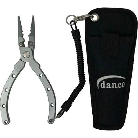 Model -DNC00100. Angler Series Drifter Pliers. 6.5 inch (16.51cm) overall. Gray anodized aluminum construction. Replaceable chrome vanadium center cutters. Black nylon belt sheath with 36 inch coiled lanyard with snap clip. Bulk packed. Made in China.