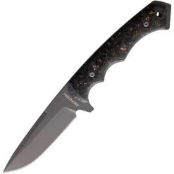 Model – TD0007BK1. Defcon 0007BK1 – Fixed Blade D2. 9″ (22.86cm) overall. 4″ (10.16cm) gray finish D2 tool steel blade. Full, extended tang. Lanyard hole. Carbon fiber resin handle with copper flecks. Black Kydex belt sheath. Boxed. Made in China.