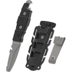 Model – MCN62060. Gear Aid 62060 – AKUA Paddle/Dive Knife with Black Handle. AKUA Paddle/Dive Knife. 7.25″ overall. 3″ gray titanium coated 420 stainless blade. Black FRN handle. Full tang. Lanyard hole. Double sided blunt tip blade with quick rip serrated top edge and line cutter. Integrated bottle opener. Black nylon belt sheath with removable clip, quick release, webbing mounts, and quick drain. Clam packed. Made in China.
