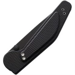 - 3.5″ (8.89cm) black coated ATS-34 stainless drop point blade