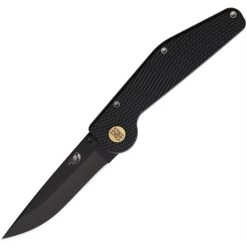 Model/Part Number – GT103. GT Knives Auto Button Lock DP. Automatic opening.4.75″ (12.07cm) closed. 3.5″ (8.89cm) black coated ATS-34 stainless drop point blade. Black checkered aluminum handle. Thumb stud. Pocket clip. Brass push button. Boxed. Proudly made here in the USA.
