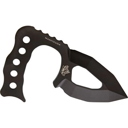 Model – HPE1081. Hardpoint Equipment 1081 – Manticuda Minimal. Manticuda. 6″ overall. 3″ black DLC coated double edge 80CrV2 carbon steel dagger blade. One piece construction. Dished-out chisel grind blade. Black Kydex belt sheath. Boxed. Proudly made in the USA.