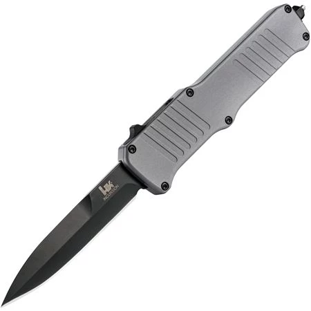 Model/Part Number – HK54092. Heckler & Koch Auto Incursion OTF Gray. Automatic opening. 5.75″ (14.61cm) closed. 4″ (10.16cm) black finish 154CM stainless blade. Gray anodized aluminum handle. Glass breaker. Pocket clip. Bayonet style blade. Ambidextrous trigger deployment and retraction. Boxed. Made here in the USA.
