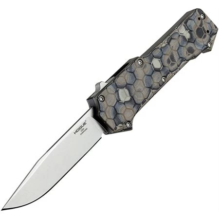 Model/Part Number – HO34037. Hogue Auto Compound OTF. Automatic opening. 4.5″ (11.43cm) closed. 3.5″ (8.89cm) tumbled finish CPM S30V stainless clip point blade. Dark Earth G10 G-Mascus handle. Pocket clip. Ambidextrous trigger deployment and retraction. Boxed. Made in USA.