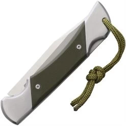 Model – RUI18643. K25 CNC Commando Lockback. 3.35″ 8Cr13 MoV steel blade. Steel and green G10 handle. Green paracord lanyard. Velvet pouch. Made in China.
