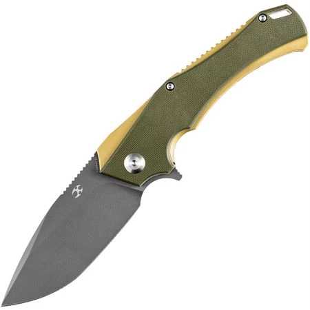 - Gold stainless handle with Olive G10 onlay