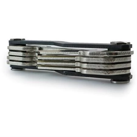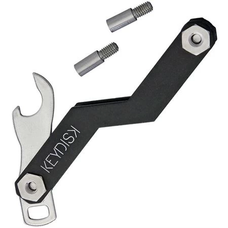 Model – KYD001. KeyDisk Mini Onyx Black. 3 inch overall. Comes with 10 rubber spacers and a set of extenders. Bottle opener/key fob attachment. Stainless screws. Capacity: 8 keys. Bulk packed.