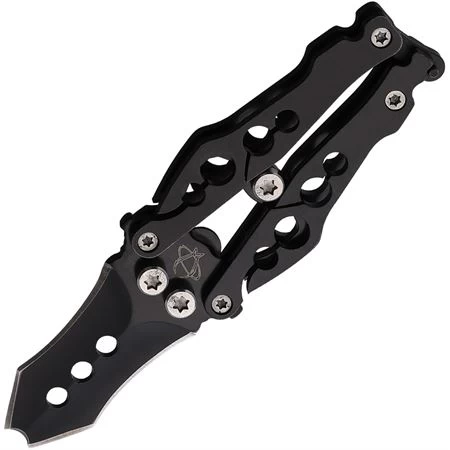 Model/Part Number – MANBK2A. Mantis Knives Bottleneck Butterfly Black. 3.5″ closed. 2″ black finish stainless modified tanto blade. Black finish stainless handle. Bottle opener. Pocket clip. Latch lock with integrated handle springs. Collaboration with Hawk Designs. Boxed. Made in China.