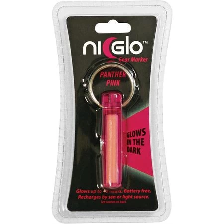 Model – NG91503. Solar Gear Marker Panther Pink. 2 inch overall. Clip. Keychain. Glows for up to 10 hours. Battery free. Recharges by sun or light source. Markers help to be seen while walking at night and make it easier to find things in the dark. Attach to tent, zips, backpacks, keys, phones, clothing, animals, or anything you may need to find in the dark. Suitable for scuba diving up to 25m or for use during night fishing. Color: Pink. Hang packaged.