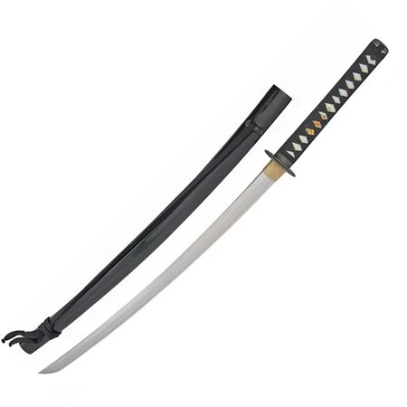 Model – PC6000KPC. Practical Elite Katana. Practical Iaito Series. 39 inch overall. 27 inch high carbon stainless blade. Black imitation leather wrapped handle. Black wood scabbard.