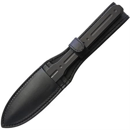 Model – QTRKT1LT. Quartermaster Knives KT1LT – Kogi Thrower Set Limo Tint. 12″ overall. 4.5″ Limo Tint finish double edge stainless blade. One-piece construction. Set of three. Black leather belt sheath. Boxed. Proudly made in the USA.