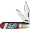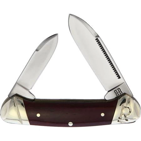 Model – RR2225. Mini Canoe Red Smooth Bone. 2.75 inch (6.99cm) closed. Mirror finish stainless spear and pen blades. Red smooth bone handle. Nickel silver bolster(s). Handle color may vary due to natural variations in the bone. Boxed.