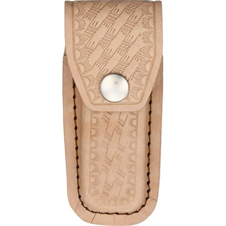Model – SH204. Sheath 204 – 3 1/2 Inch to 4 Inch Knife Belt Pouch with Natural Basketweave Leather. Natural. Fits 3 1/2″ to 4″ knife. Embossed basketweave design. Made in Mexico.