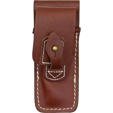 Model – SH1019. Sheaths 1019 – Leather Knife Sheath. Brown leather construction with stud loop closure and belt loop. Holds folding knives up to 4 1/2″ closed. Bulk packed. Made in China.