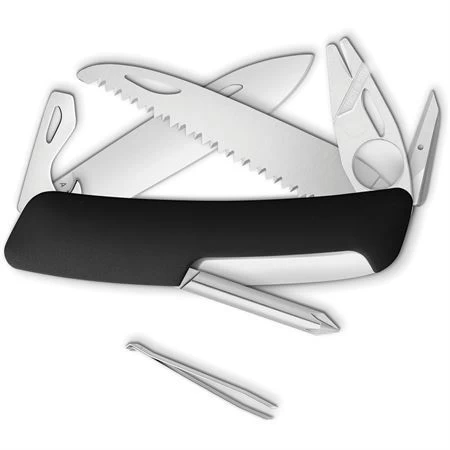 - Tools include: Bottle opener l Screwdriver tip l Blade with safety lock l Saw blade l Phillips screwdriver l Tweezers l Reamer with sewing eye I Tick tool