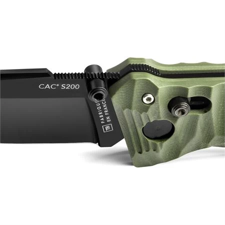 Model – TBO041. TB Outdoor C.A.C. S200 Axis Lock Green. C.A.C. S200 French Army Knife -; Textured G10 Handle – Army Green Made in France.