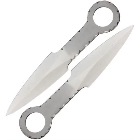 Model – VF010. Valley Forge Knives 010 – Valley Forge Thrower Fixed Blade Knife with Stainless Construction – Set. Includes two 8 1/4″ overall knives with 4 1/4″ blade. Stainless construction with 1″ ring pommel. Made in Pakistan.