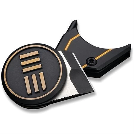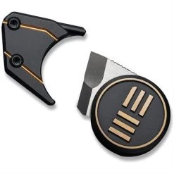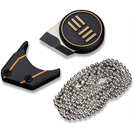 Model – WE200211. We 200211 – Quark. 1.5″ (3.81cm) overall. 0.25″ (.64cm) black stonewash and satin finish Bohler M390 stainless blade. Black titanium handle. Lanyard hole. Black titanium blade cover. Gold WE logo on handle. Ball chain lanyard. Boxed. Made in China.