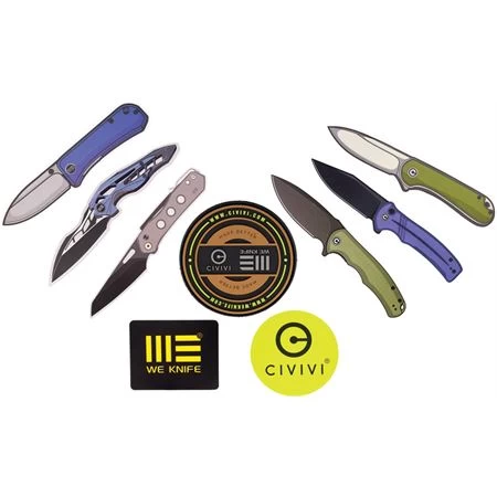 Model/Part Number – WENKD. WE Knife Company National Knife Day Give Away. Contains a selection of stickers and a patch in celebration of National Knife Day. Bulk packed. FREE with purchase of any WE or Civivi product. Customer must request free item #WENKD. While supplies last. Made in China.