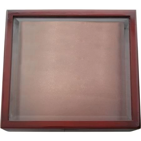 Model – I1912. Display with Cherry Finish Wooden Construction. Measures 11 inch x 10 inch x 2.75 inch. Cherry finish wooden construction with glass front. Tan velveteen lined formed insert. Made in China.